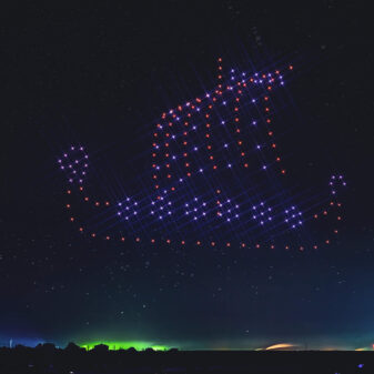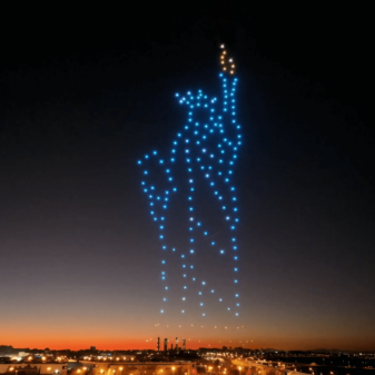 300 drones équipés de la technologie LED, plus de 16 millions de nuances de couleurs, des chorégraphies 100 % personnalisables et une durée de plus de 10 minutes.